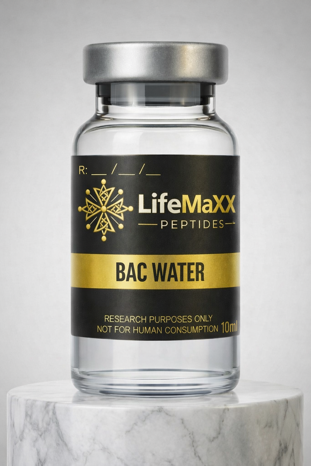 Bacteriostatic Water (BAC Water) 10mL is a sterile, non-pyrogenic solution containing 0.9% benzyl alcohol, designed for reconstitution and dilution of research compounds. The added benzyl alcohol acts as a preservative, helping to inhibit bacterial growth and allowing for multiple withdrawals when used under proper laboratory conditions. Each 10mL vial is sealed for integrity and intended strictly for research use only, not for human or veterinary application.